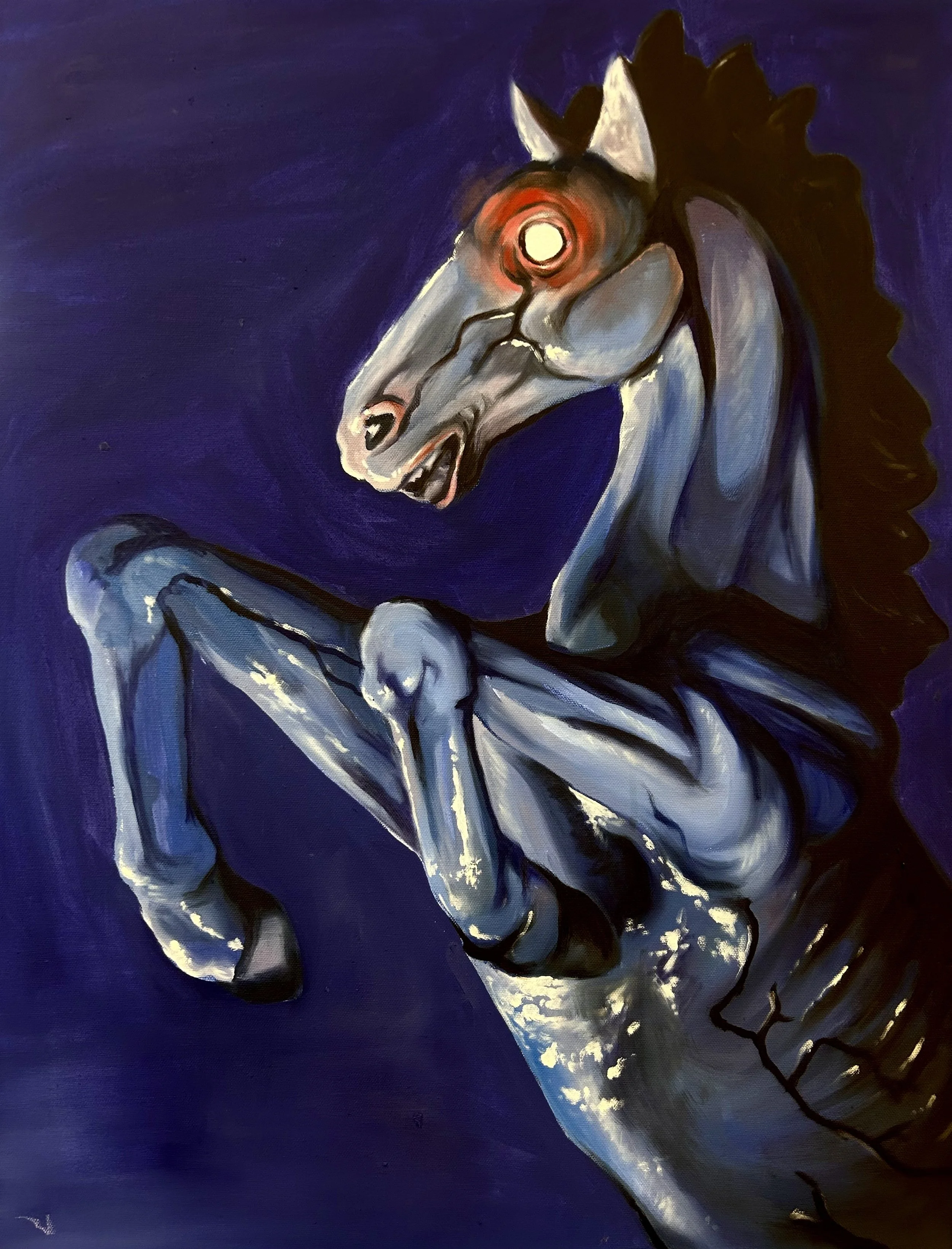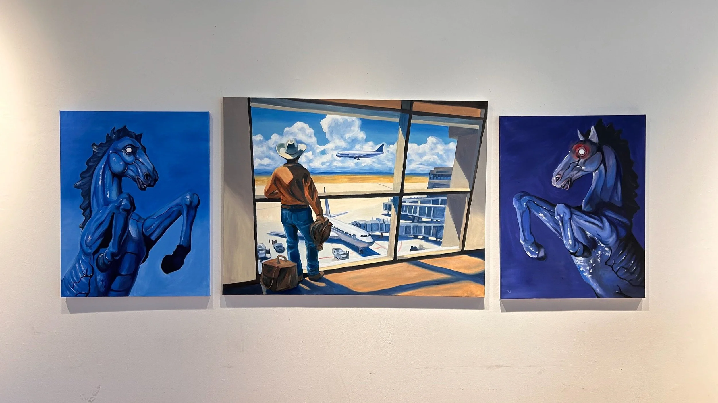 DIA Triptych Frontier - 2024. Oil on canvas - 30 x 40 in Arrival - 2024. Oil on canvas - 28 x 22 in Departure - 2024. Oil on canvas - 28 x 22 in